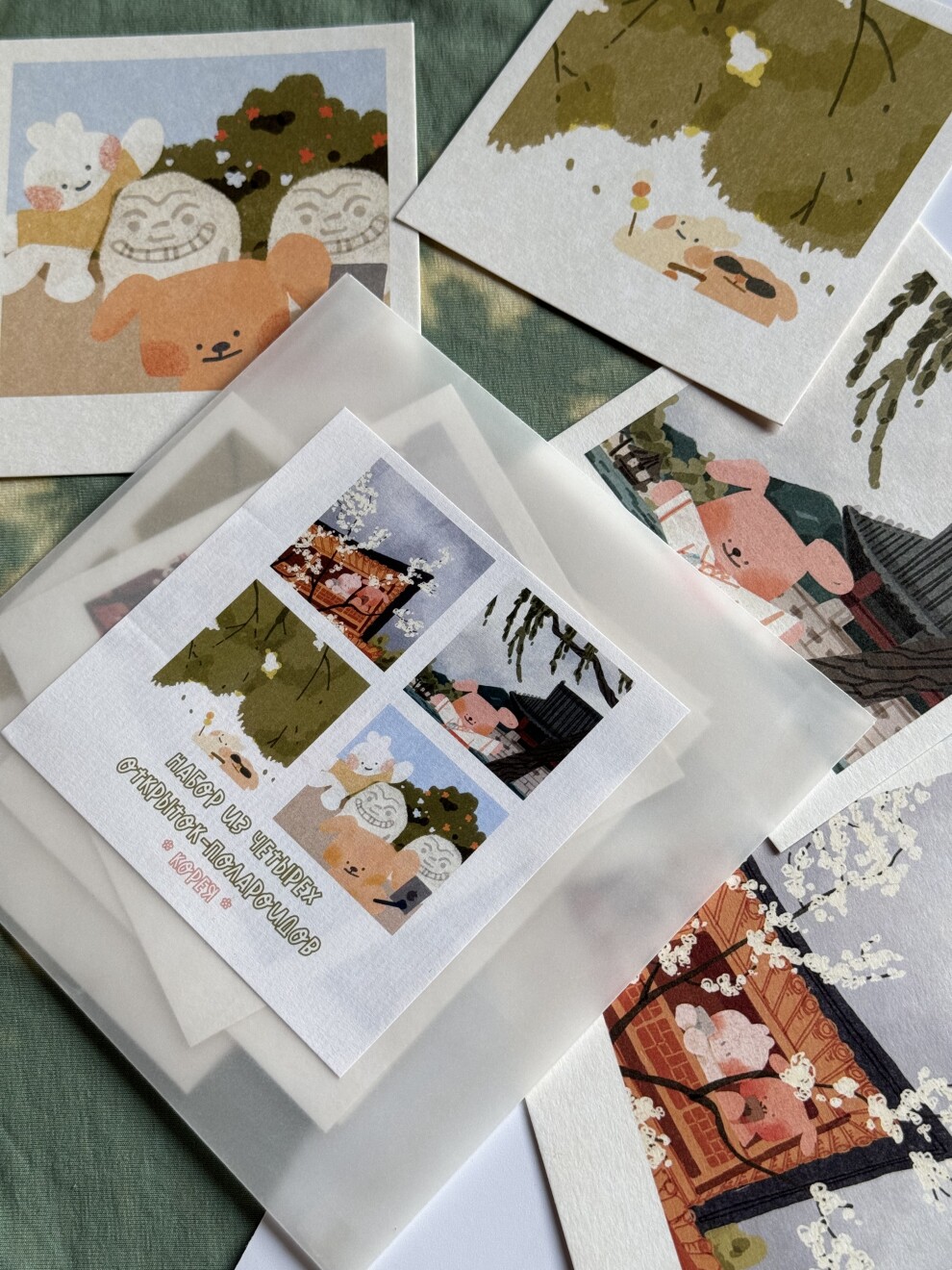 набор из 4х открыток полароидов